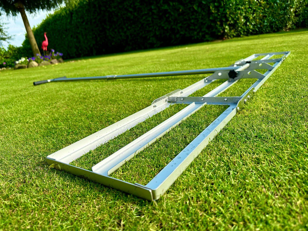 Das sogenannte Topdressing ist eine Wellnesskur für den Rasen. Mit unserer Sandraupe lässt es sich leicht einarbeiten. Dabei werden Löcher ausgeglichen und die Fläche begradigt. Unsere Sandraupe lässt sich von einer Arbeitsbreite von 90 cm auf 180 cm verlängern. Dadurch sind besonders ebene Flächen garantiert! Durch den T-Griff am Aluminiumstiel ist rückenschonendes Arbeiten möglich.